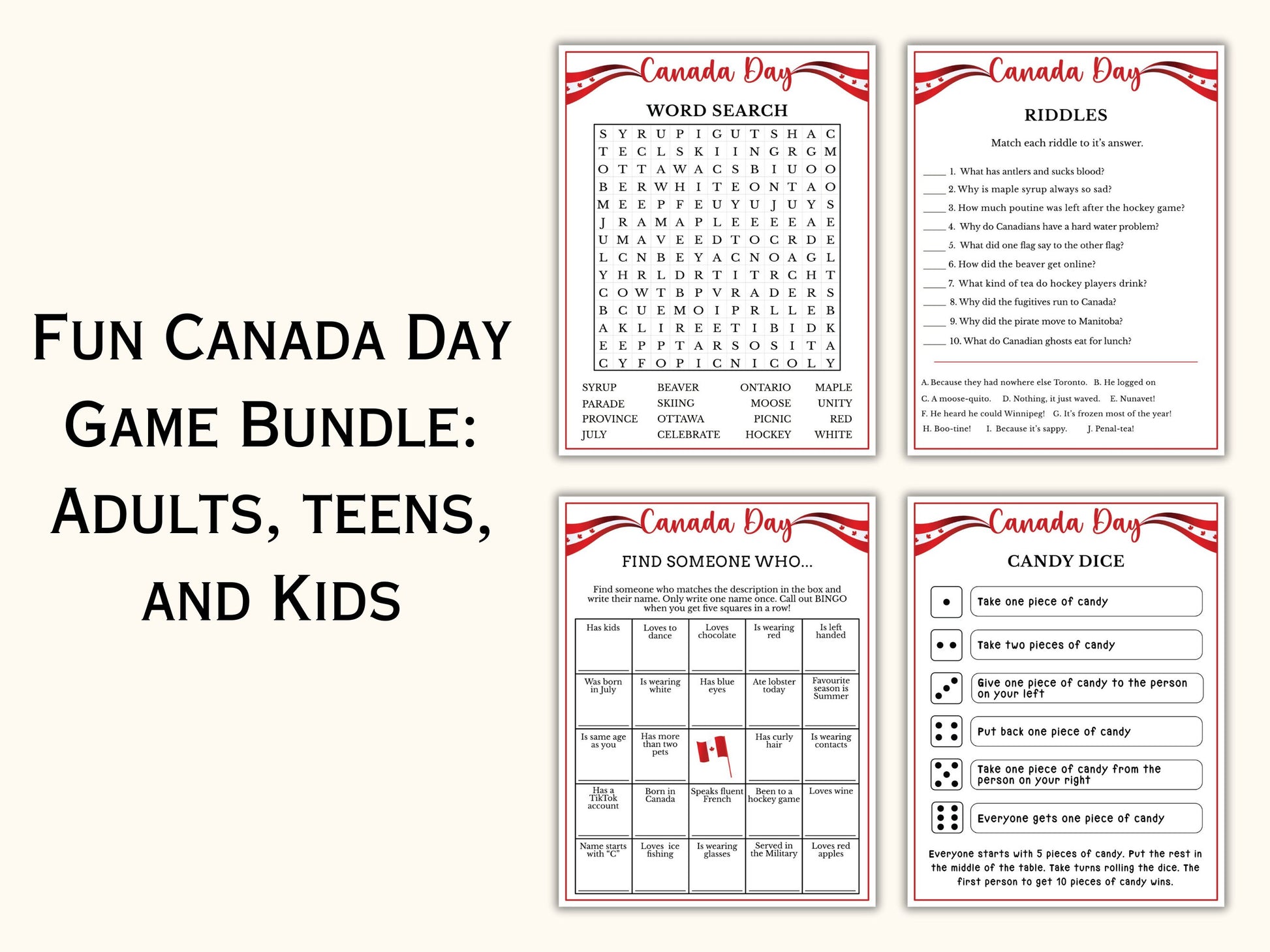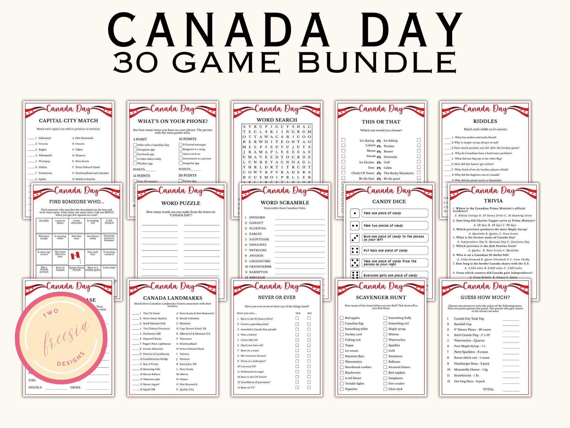 Canada Day Games - 30 Games