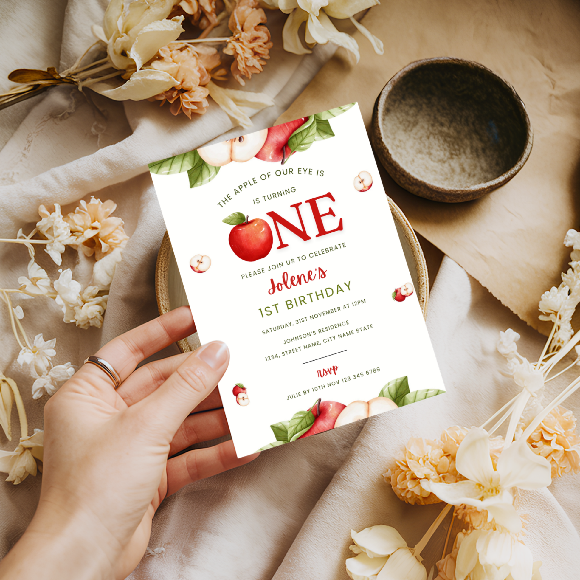 Apple 1st Birthday Invitation