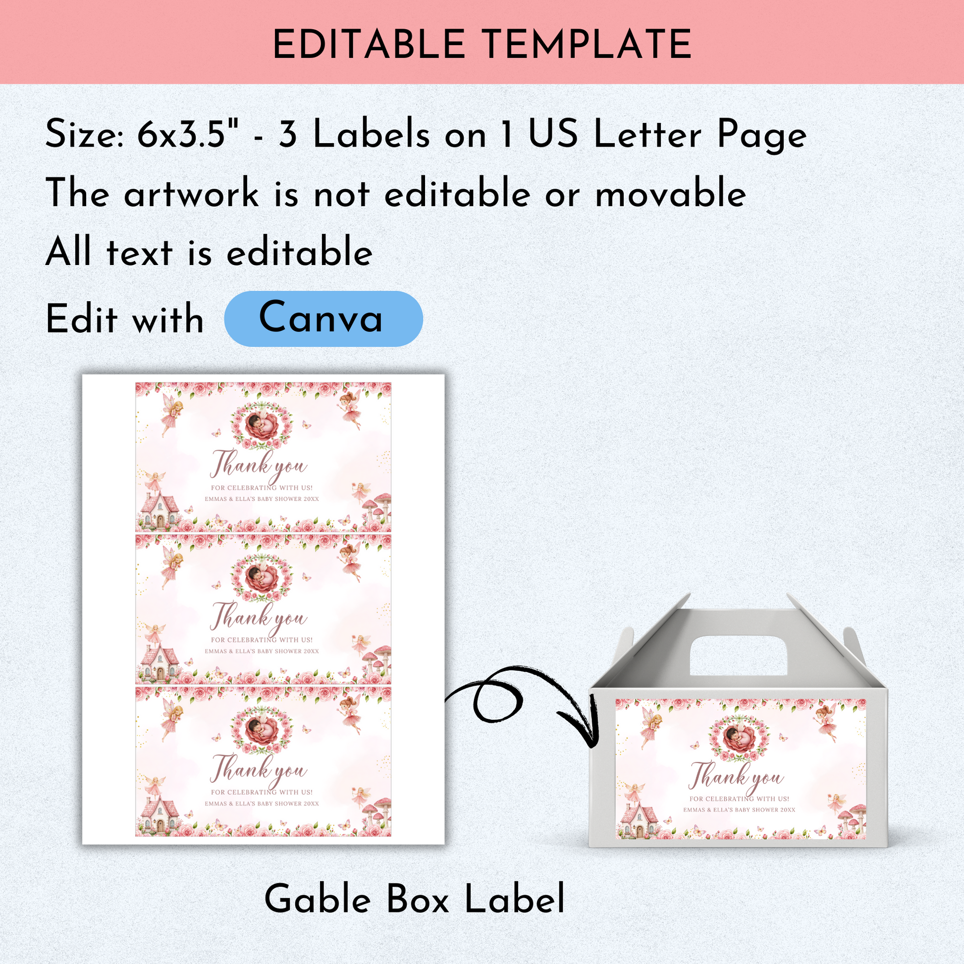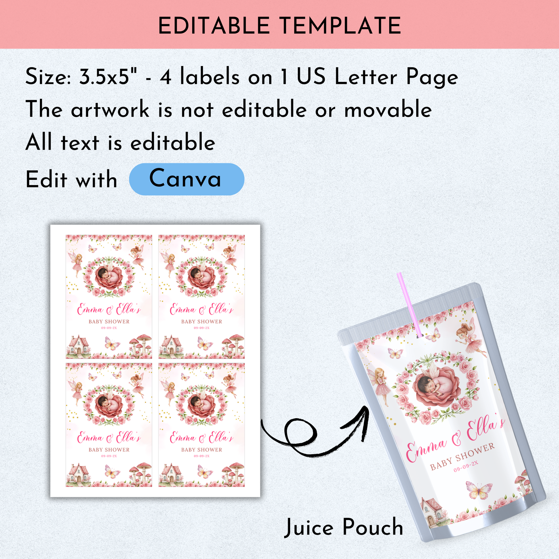 Fairy Baby Shower Favor Template Bundle