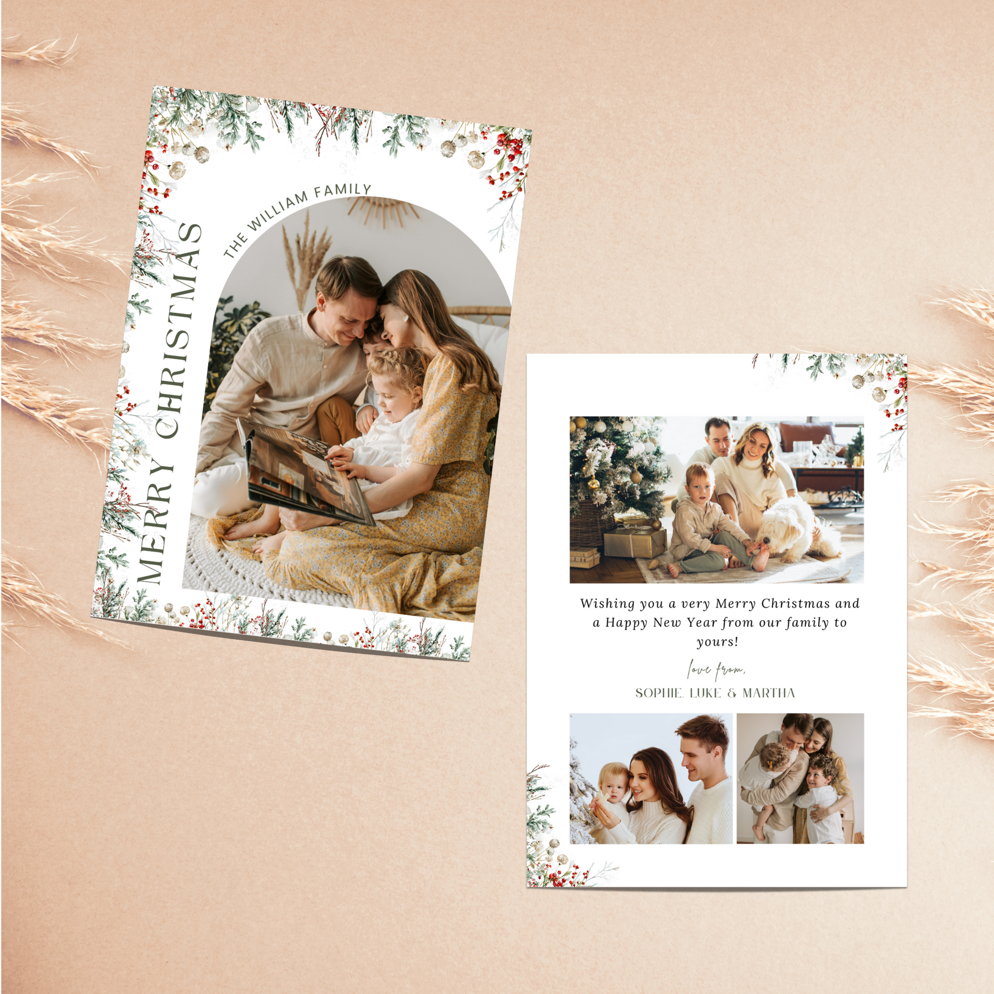 Floral Holiday Photo Card Template