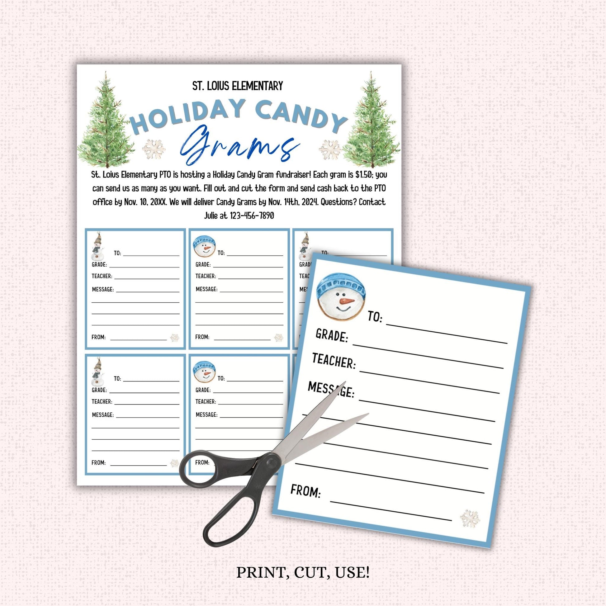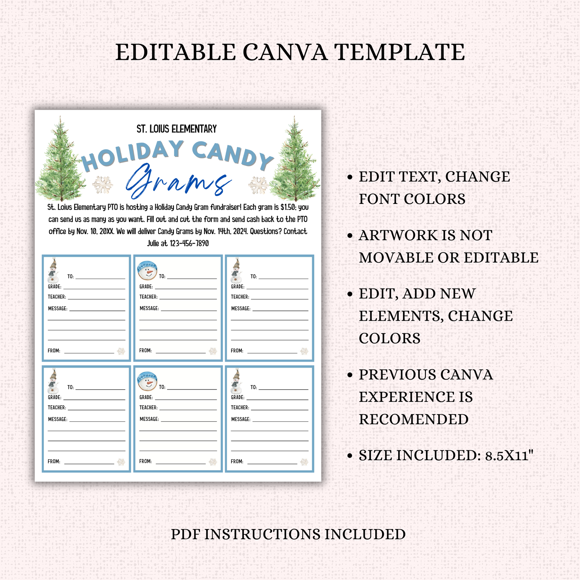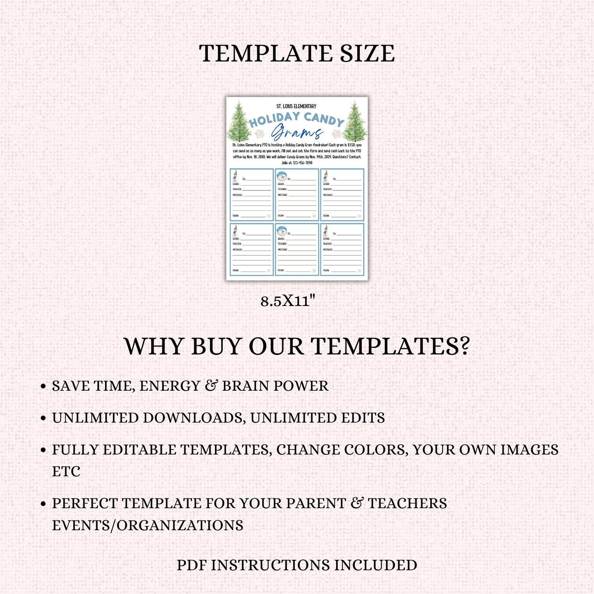 Editable Holiday Candy Cane Gram Template
