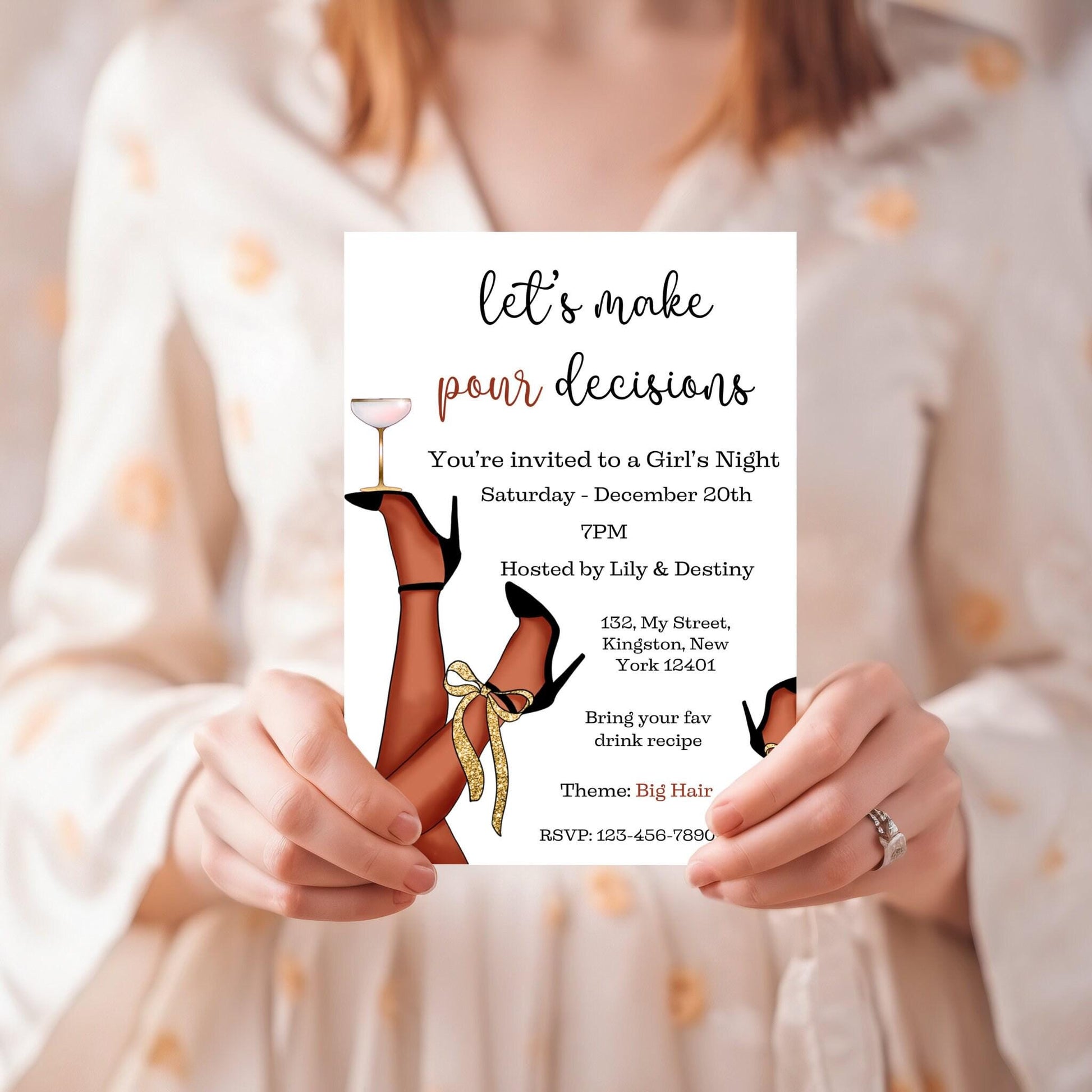 Let's Make Pour Decisions Invitation Template - Editable Ladies Night Birthday, Bachelorette Party Invitation - Digital Bar Hopping Invite