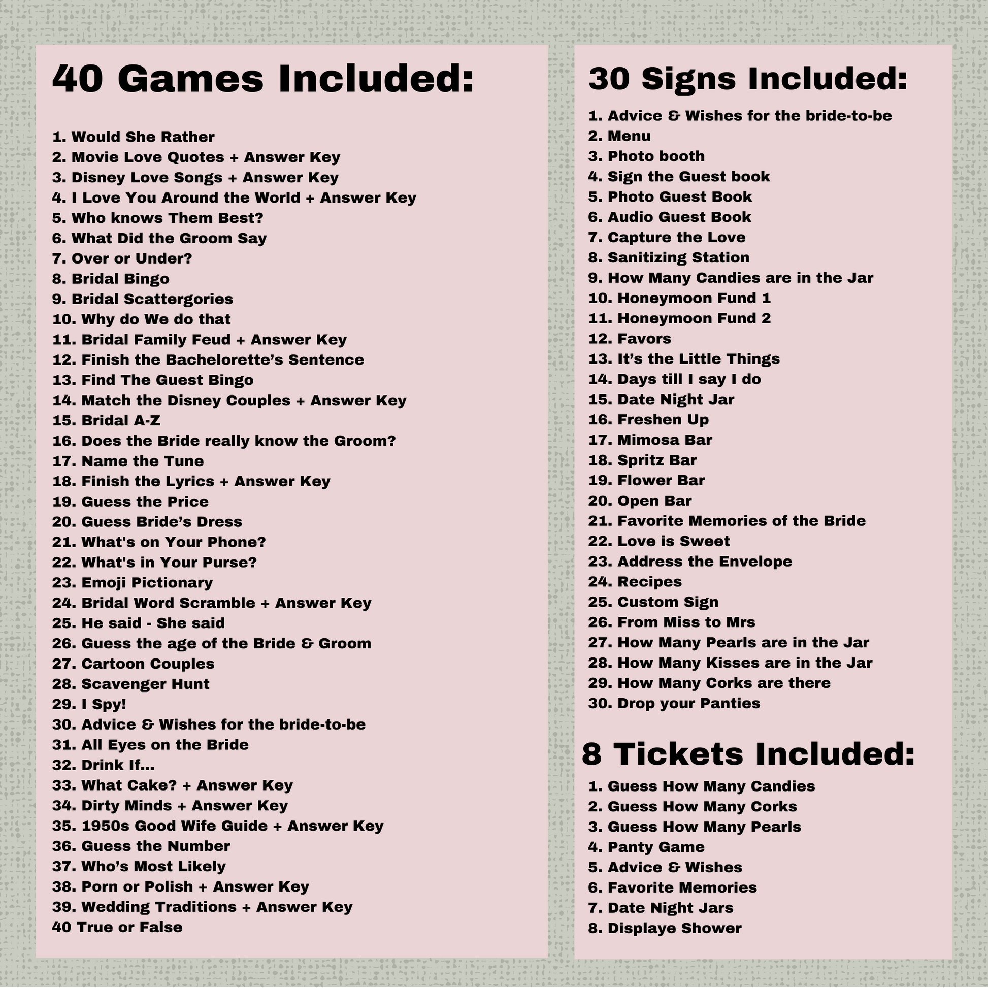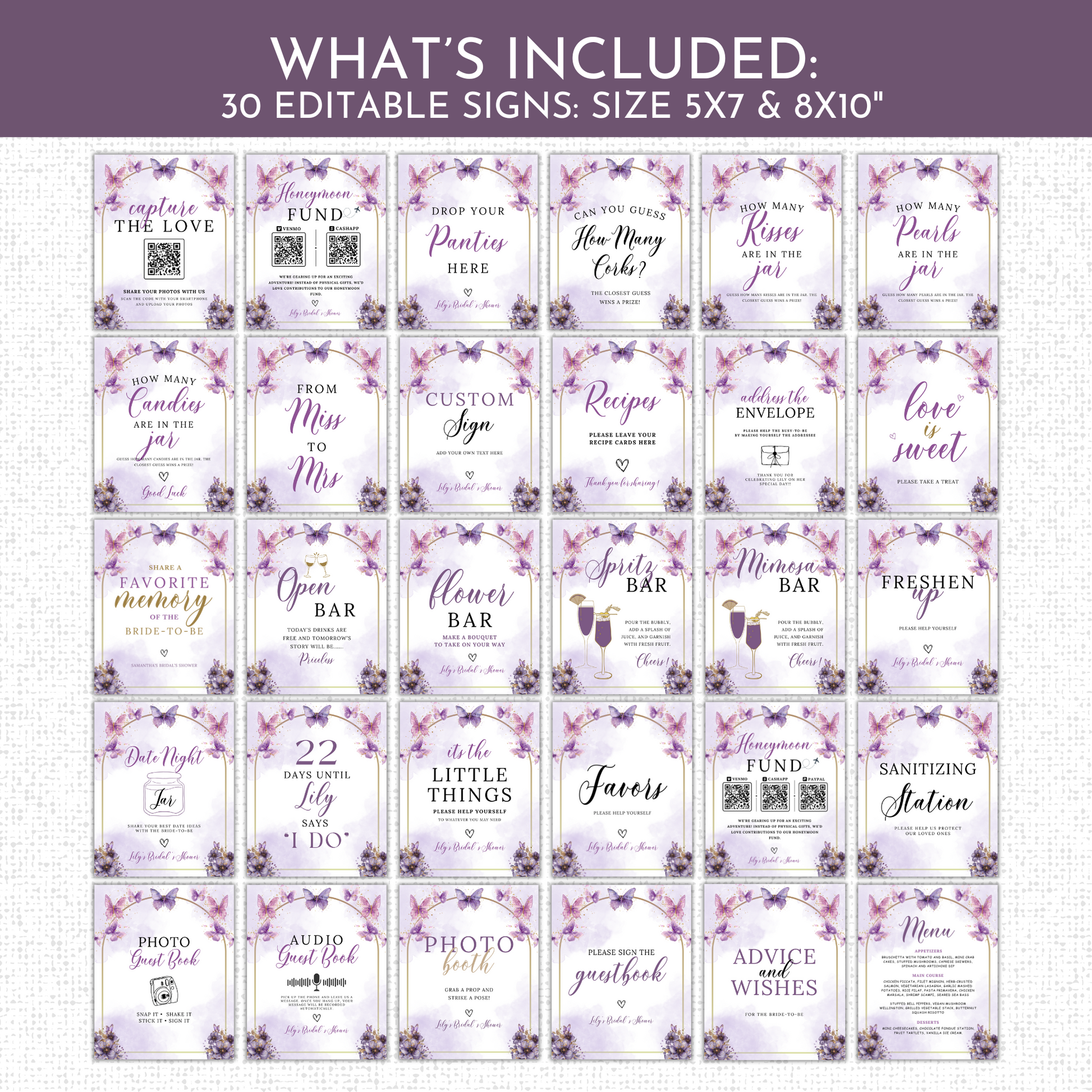 Lifetime of Butterflies Bridal Shower Games & Signs