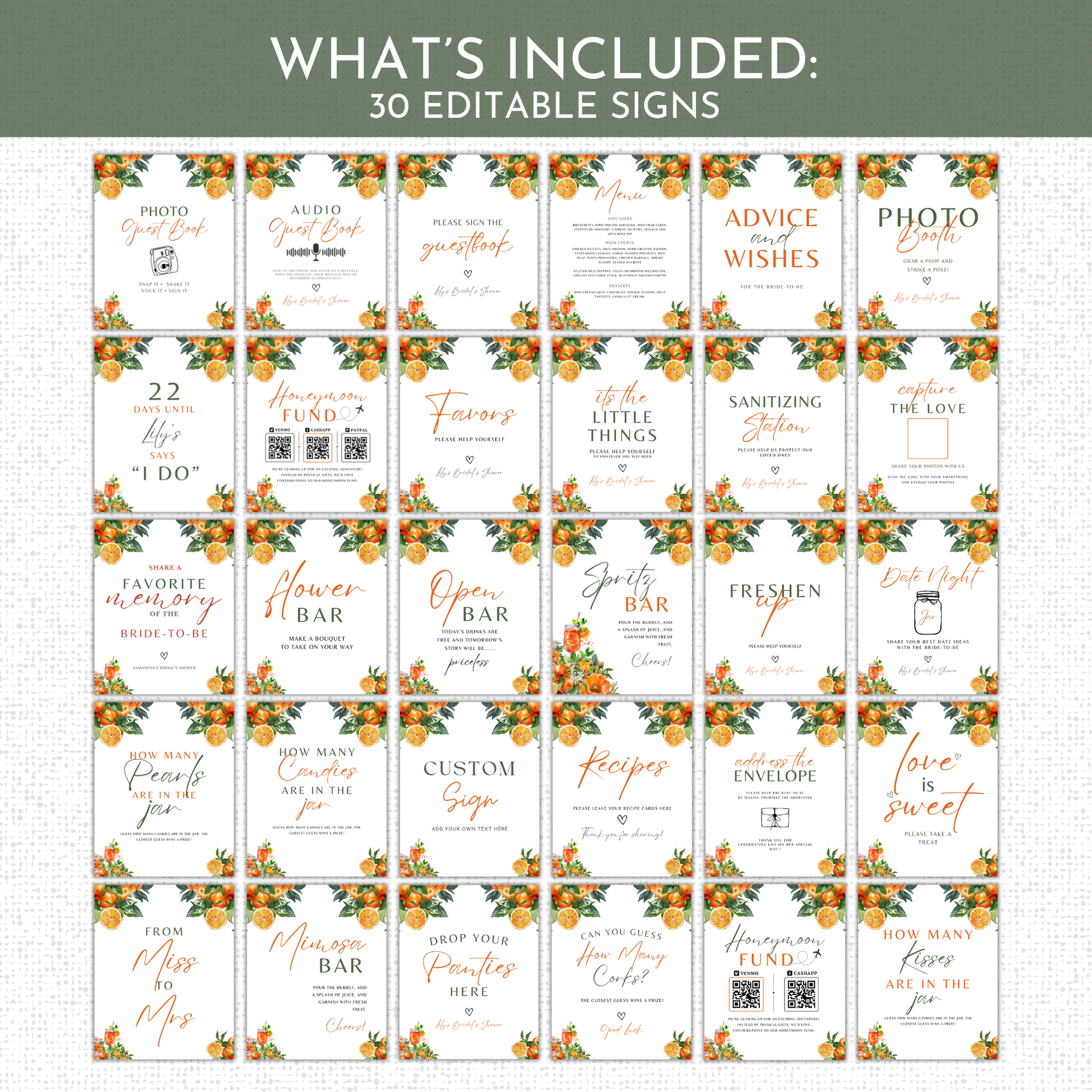 Love at First Spritz Bridal Shower Games & Signs