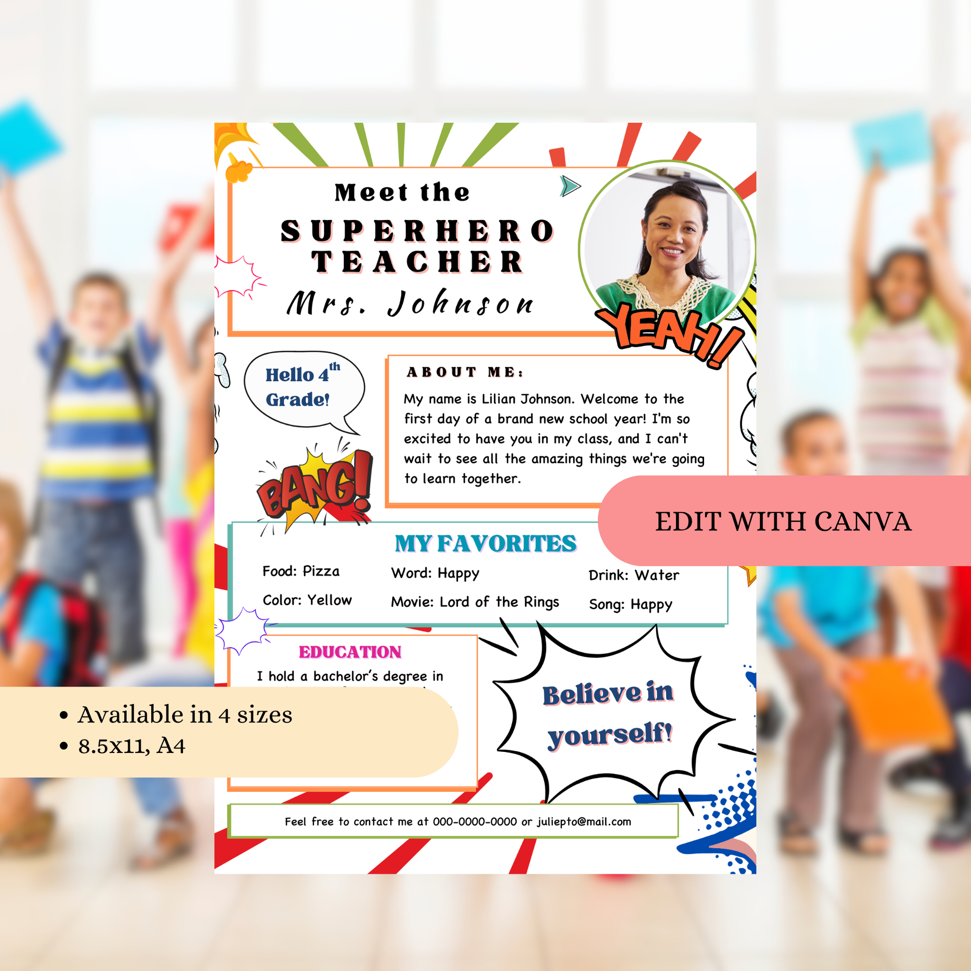 Meet your Teacher Template - Superhero