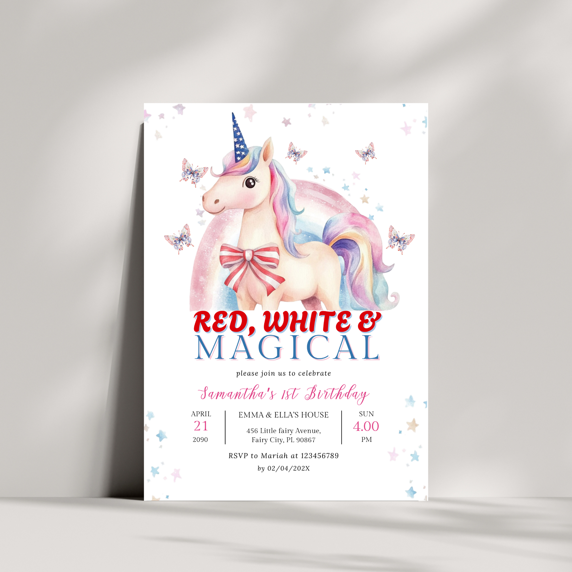 Patriotic Unicorn 1st Birthday Invitation