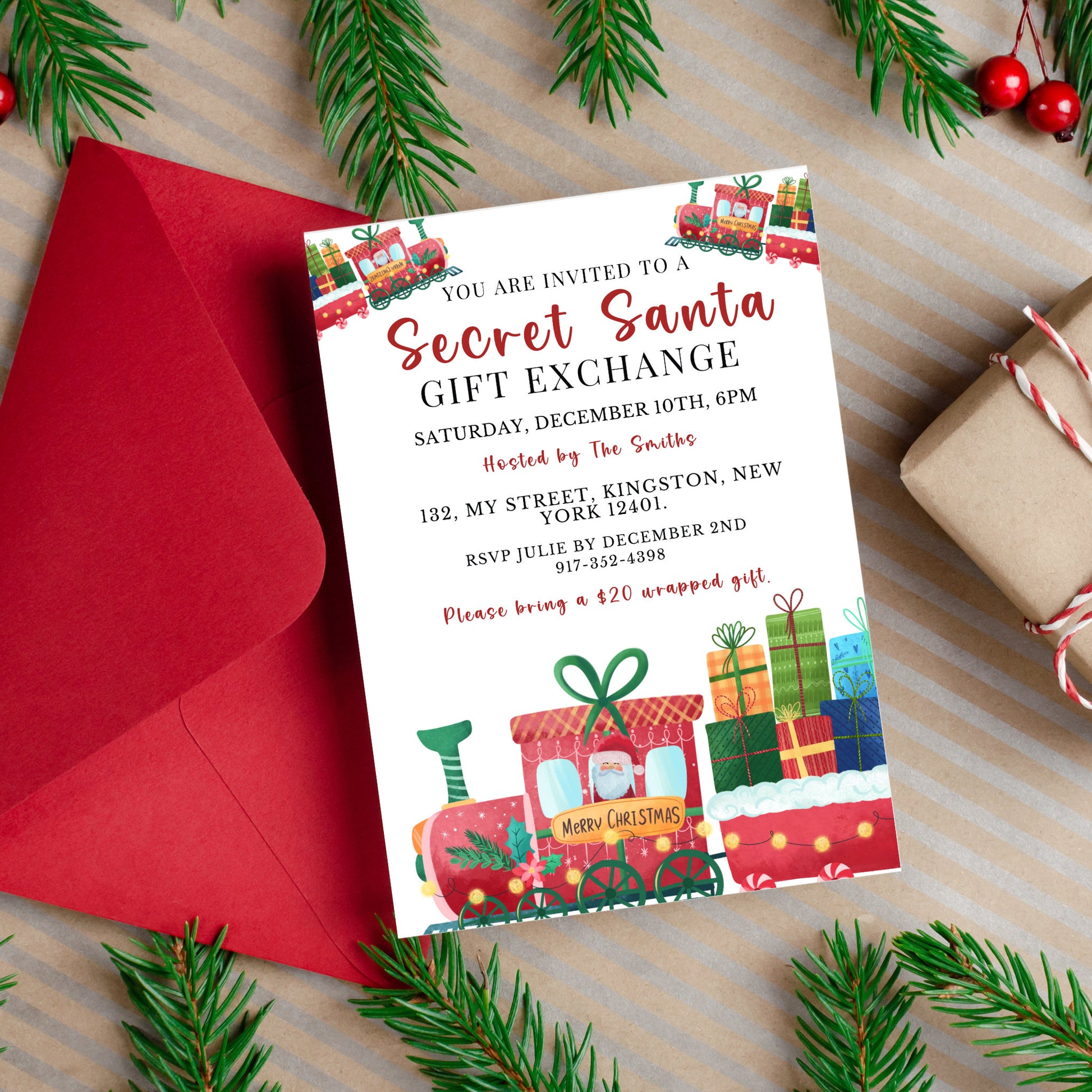 Secret Santa Gift Exchange Party Invite Template