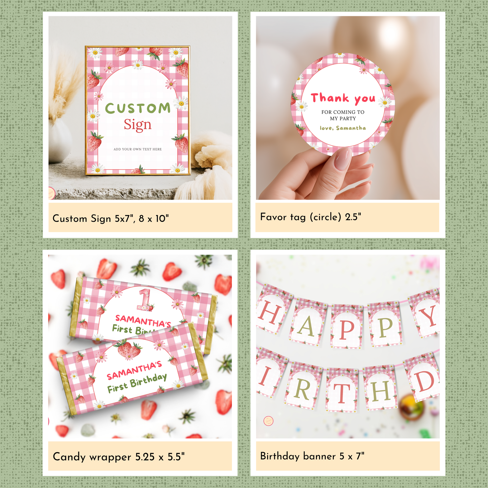 Strawberry 1st Birthday Template Bundle #2