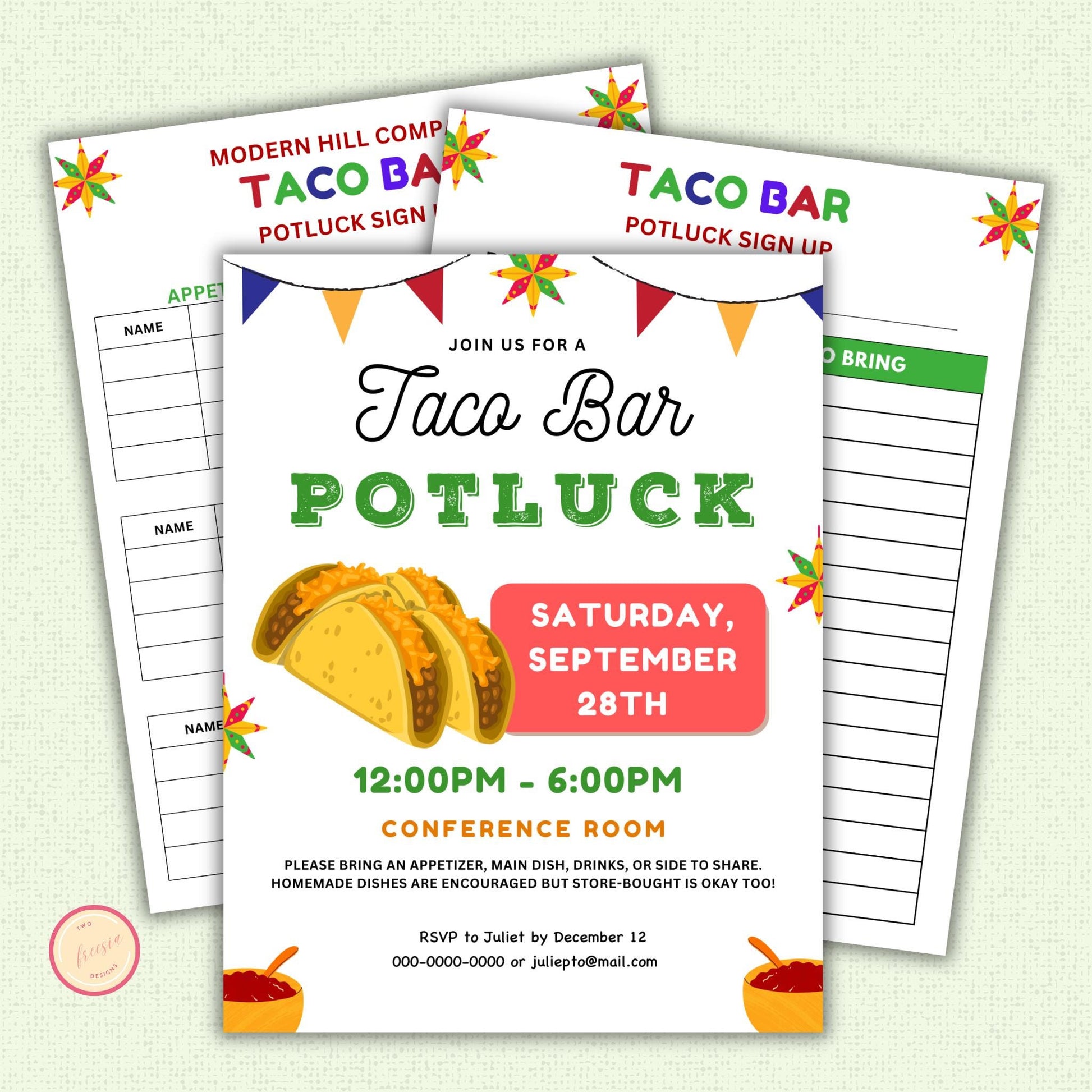 Taco Bar Potluck Flyer Template & Sign-up Sheet