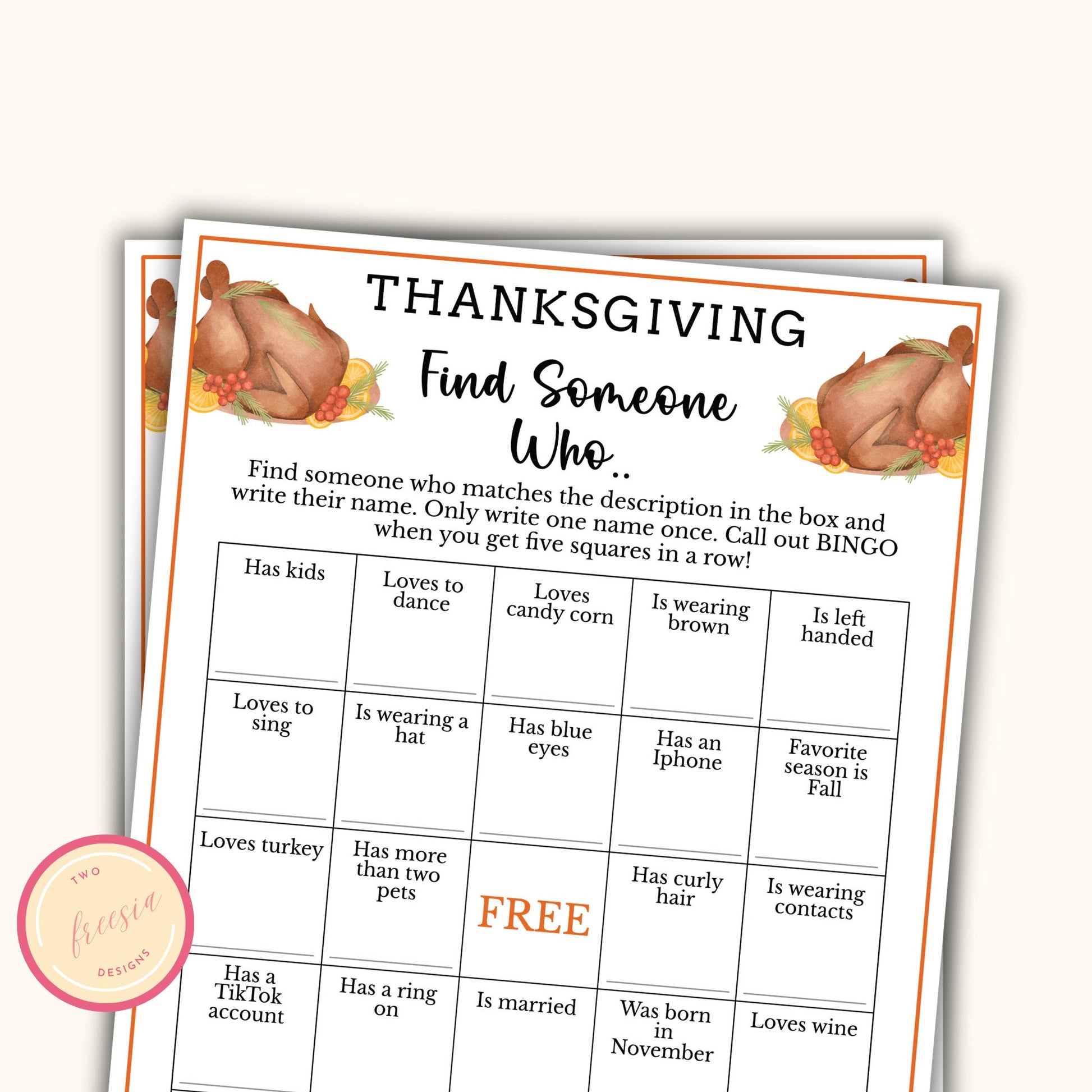 Thanksgiving Find the Guest Bingo Game