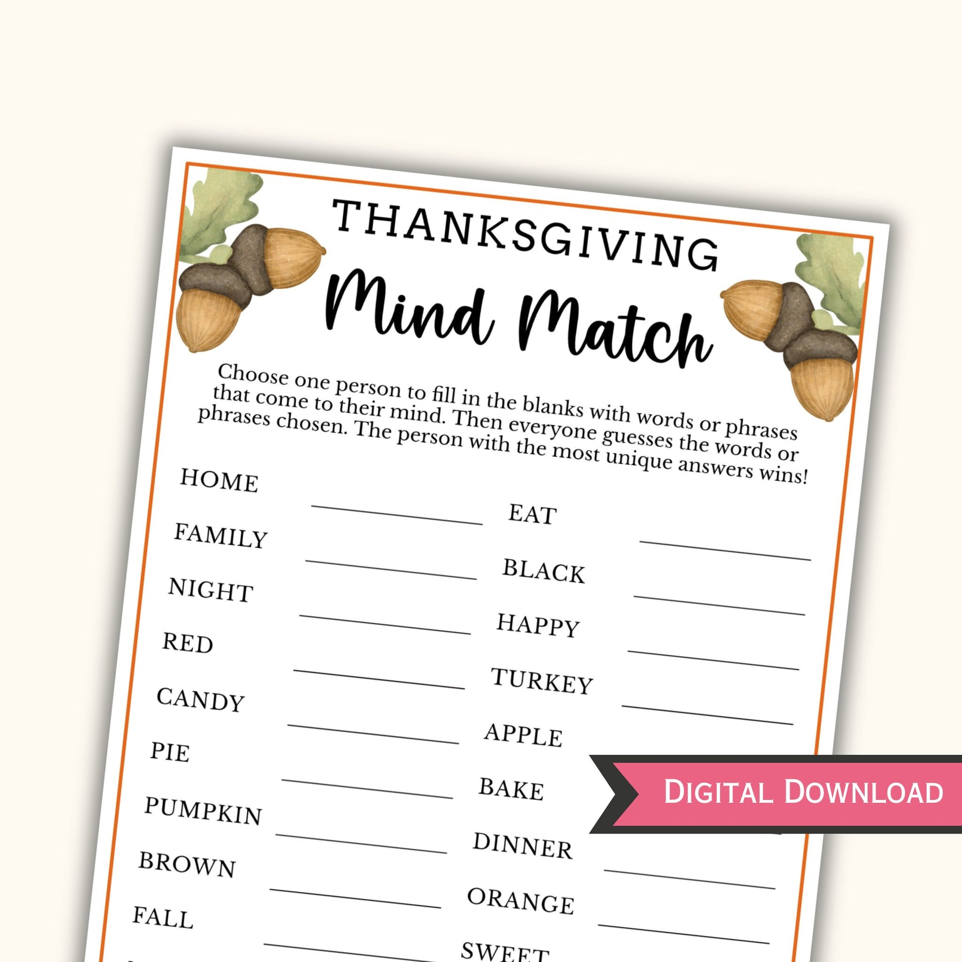 Thanksgiving Mind Match Game