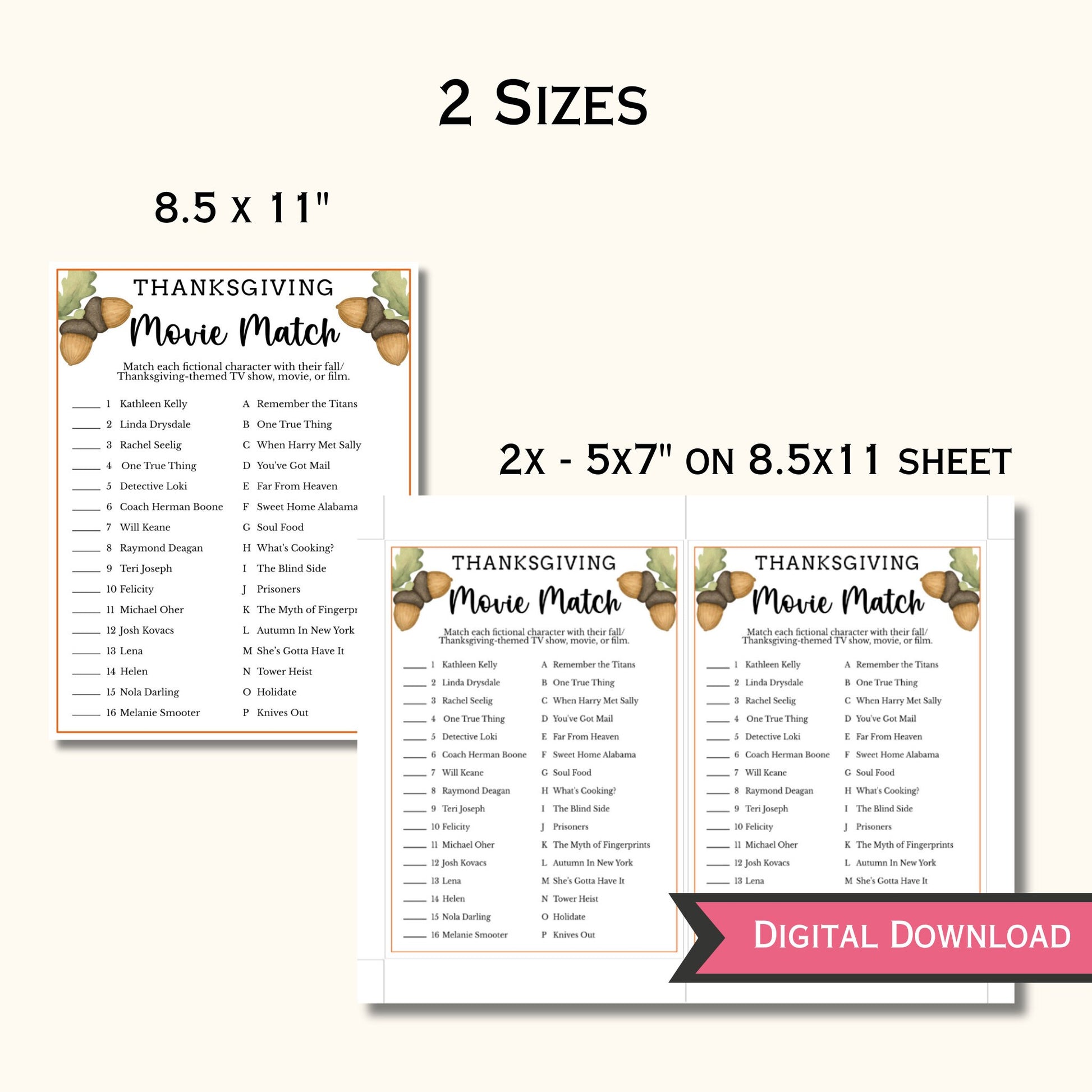 Thanksgiving Movie Match Game