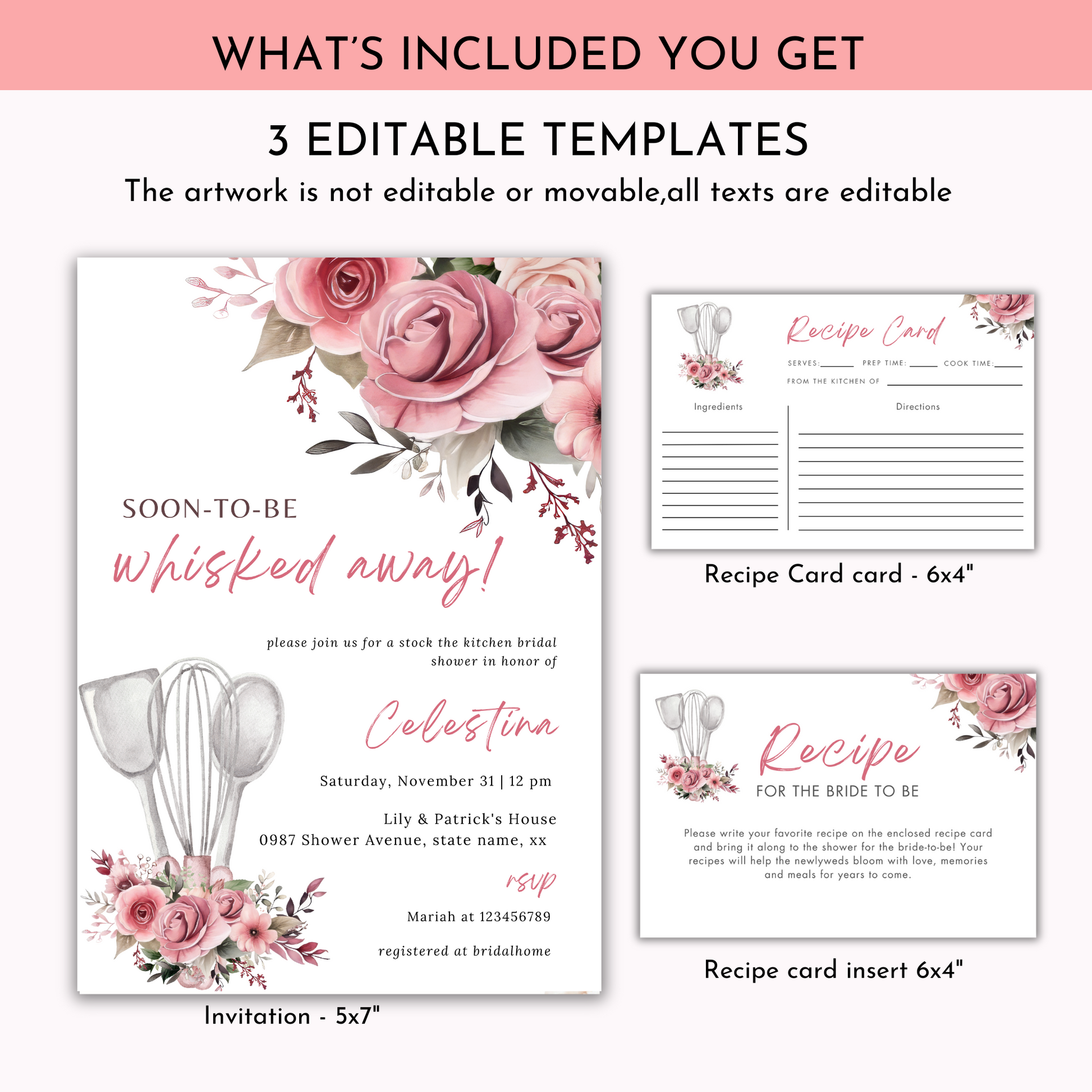 Whisked Away Bridal Shower Invitation Bundle - Pink Floral