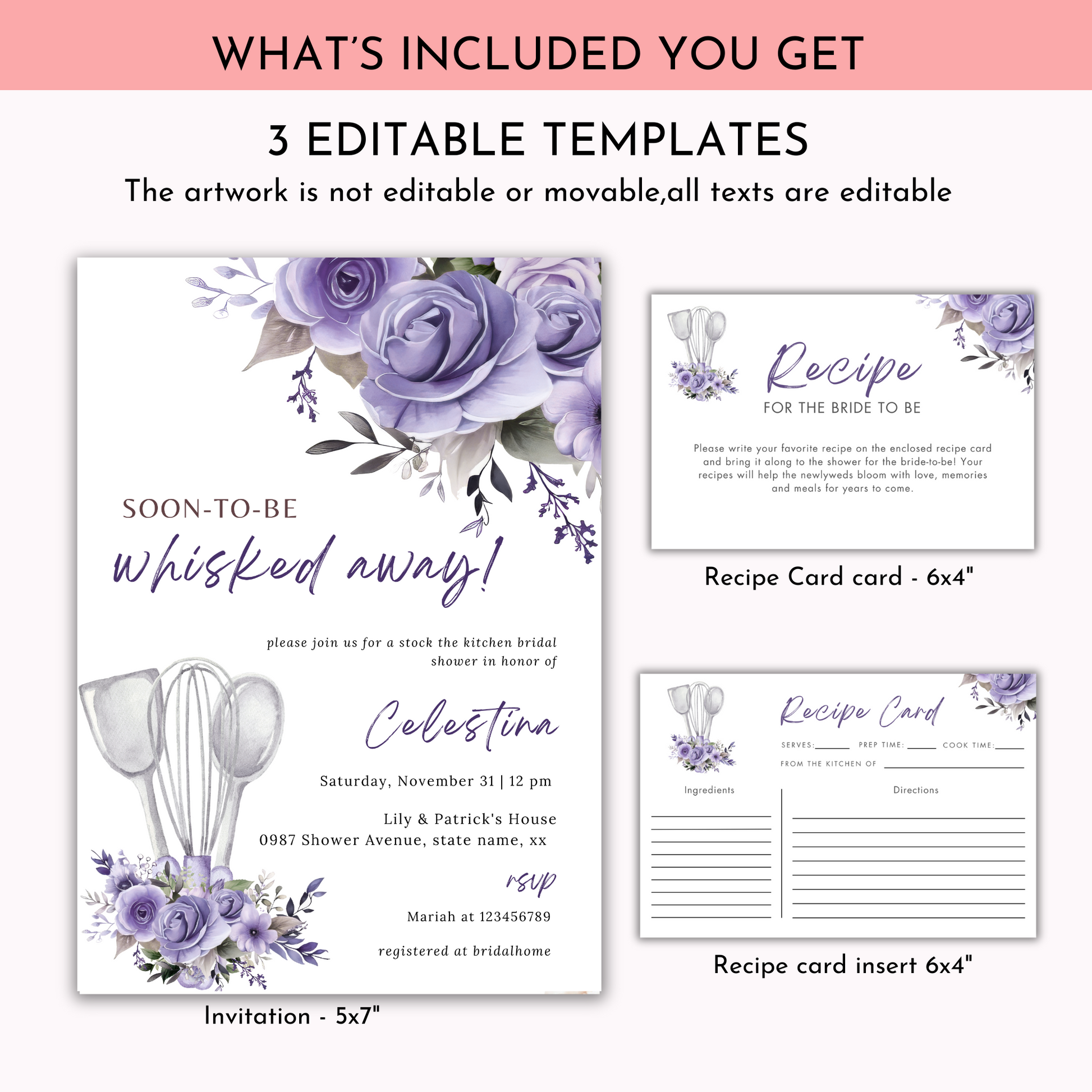 Whisked Away Bridal Shower Invitation Bundle - Purple Floral