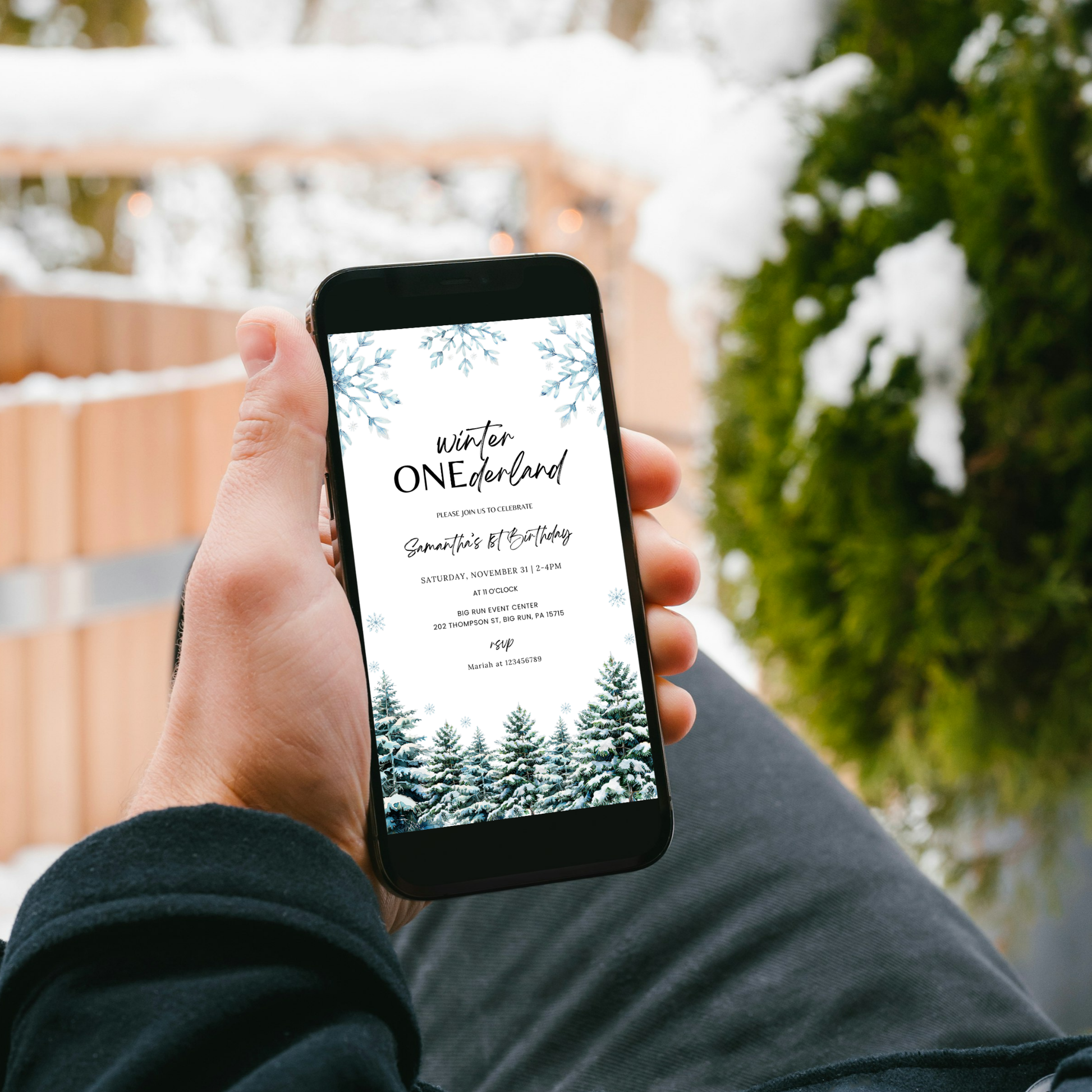 Winter 1st Birthday Invitation - Woodland